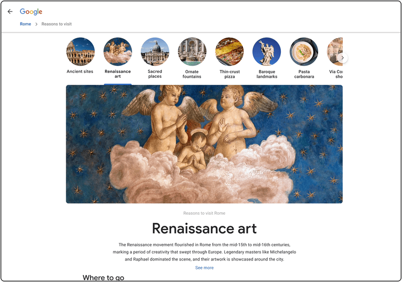 Travelers can now get an overview of the reason to visit their destination with things to see and do organized around those aspects.